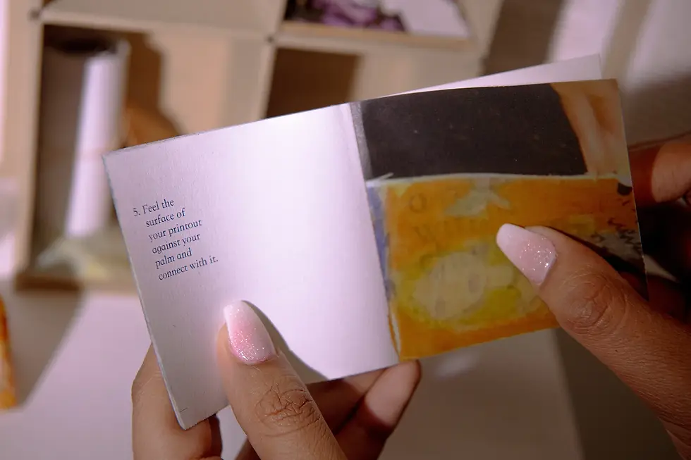 I showcased my work in an immersive exhibition, featuring vinyl instructions, visuals of the outcomes, scents of the materials, and a sound compilation evoking the rituals from my home. I followed the 5 E's of experience design to create an impactful moment.